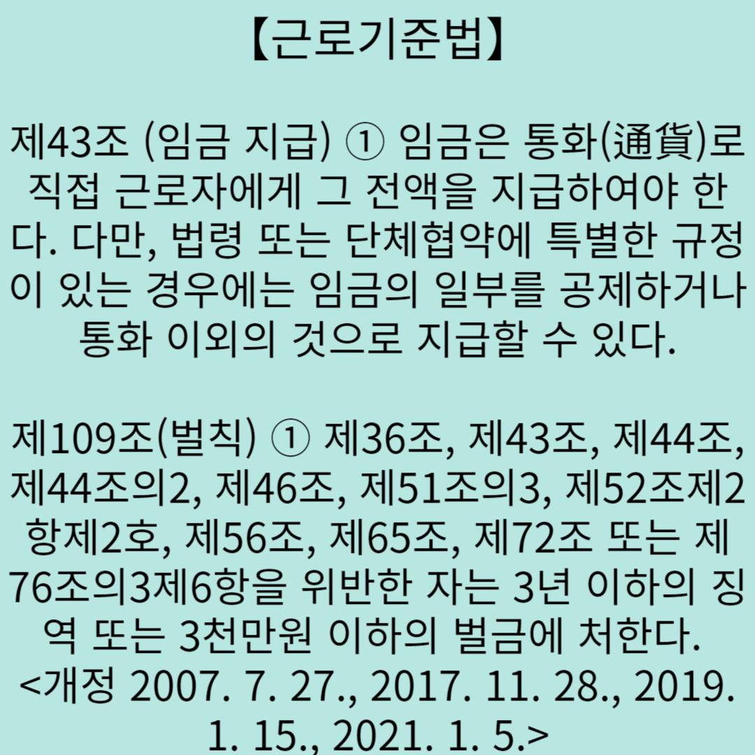 통상임금 : 기본급, 각종 수당(직위수당, 직무수당, 가족수당, 기타 정기수당), 상여금을 말하는 것으로 회사 규칙에 의해