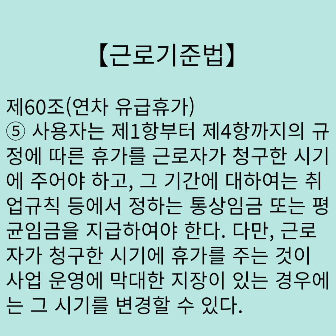 연차휴가수당의 지급은 임금지급일인 '유급휴가 부여 직전' 또는 '유급휴가 부여 직후'에 하여야 합니다.