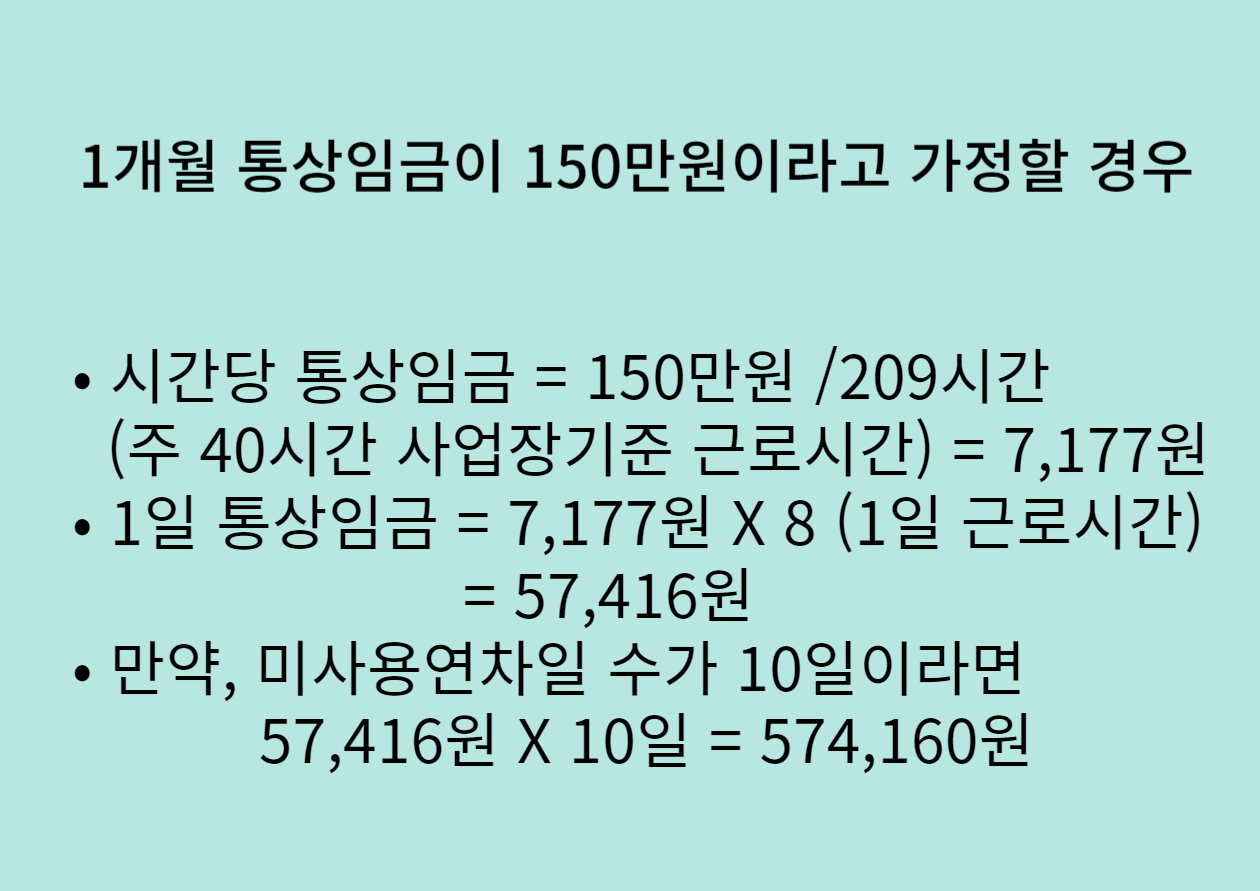 연차수당 계산법 : 1일 통상임금 X 미사용 연차일수