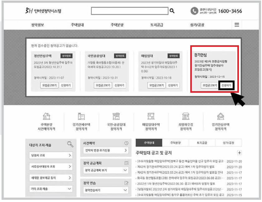 - 인터넷청약시스템 장기안심 ‘청약신청하기’ 클릭